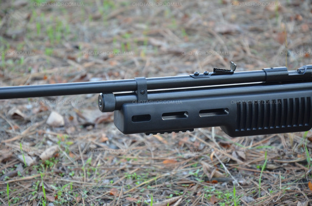 Ергономічна ложка гвинтівки виготовлена з міцного полімеру, має пістолетну ручку для зручнішого використання й інтегровану планку Weaver/Picatinny для встановлення піддульних аксесуарів.